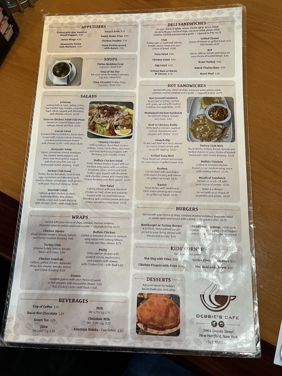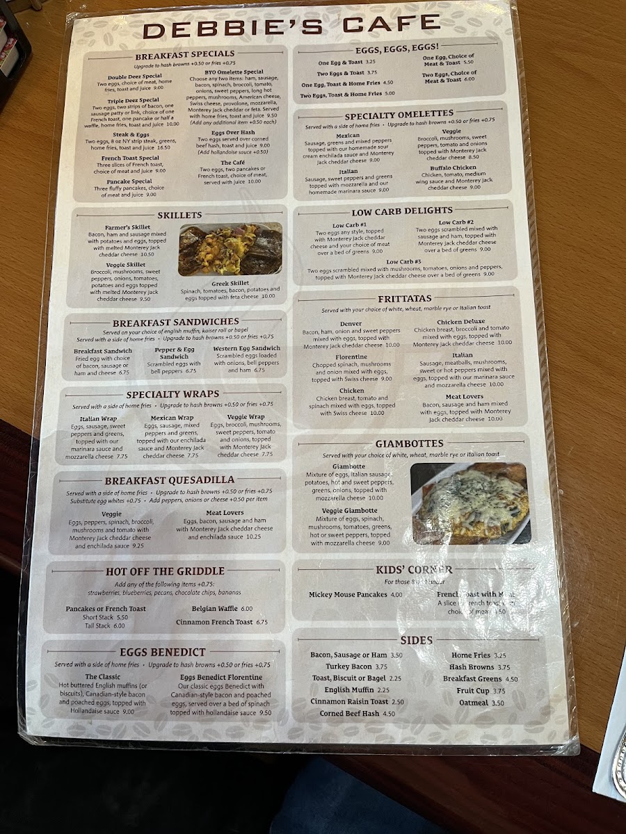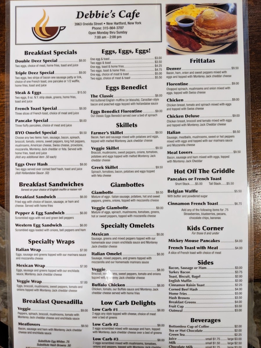 Welcome to Debbie's Cafe, a charming diner located at 3963 Oneida St, New Hartford, NY, where breakfast and lunch delight the senses at every turn. The menu features a variety of expertly crafted dishes, including delectable frittatas and eggs benedict, each prepared to perfection. Highlights include the savory Denver Frittata and the classic Eggs Benedict Florentine.